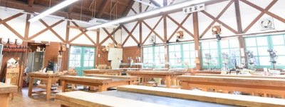 「木とのふれあい」をテーマとする丹波年輪の里では、木製遊具で遊んだり、工作室で木工玩具などを自分で作ることができます。